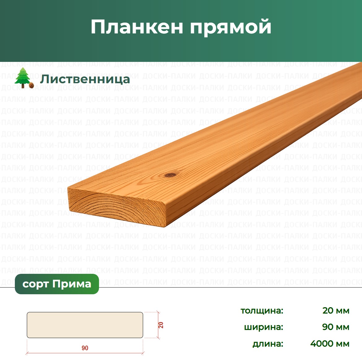 Планкен прямой Лиственница, 20×90×4000 мм, сорт Прима — планкен из лиственницы для экономичной отделки фасада. Мелкие дефекты допустимы — под тонировку или покраску не критично. Вентилируемый монтаж. Доставка по Москве и МО — Доски-Палки.