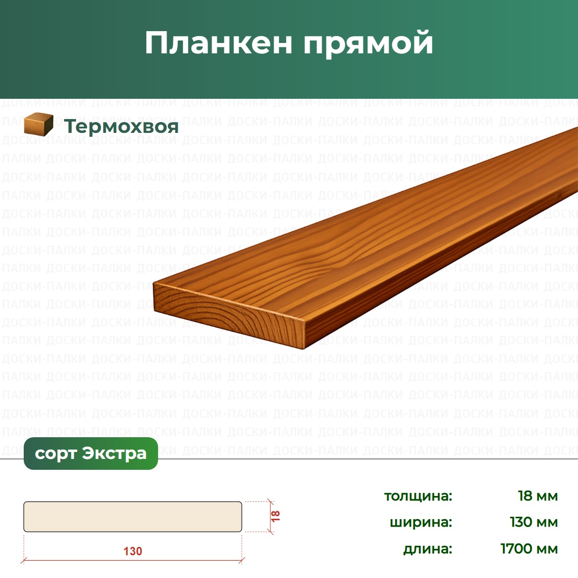 Планкен прямой Термохвоя, 18×130×1700 мм, сорт Экстра — планкен из термохвои. Сорт Экстра. Не требует сложного каркаса — монтаж на стандартную обрешётку. Устойчив к УФ-излучению. Рассчитаем количество и комплектующие. Доставка по Москве и МО — Доски-Палки.