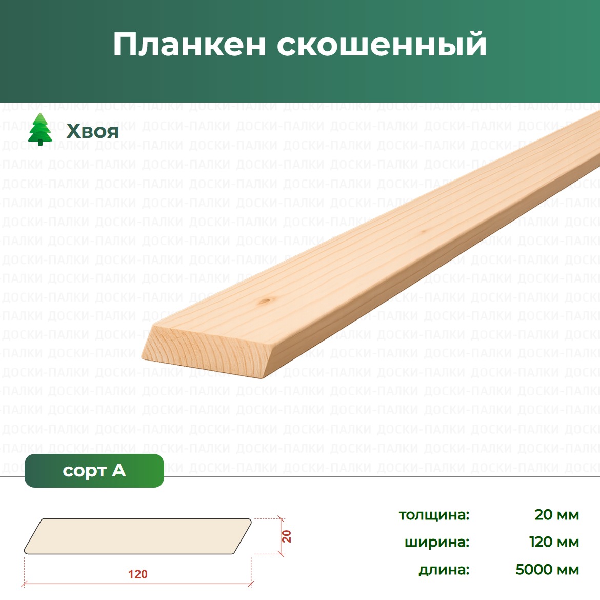 Планкен скошенный Хвоя, 20×120×5000 мм, сорт А — планкен из хвои для фасадов. Сорт Прима — допускаются редкие здоровые сучки, которые не портят вид. Отличный выбор по соотношению цена-внешний вид. Рассчитаем расход — закажите в магазине Доски-Палки.