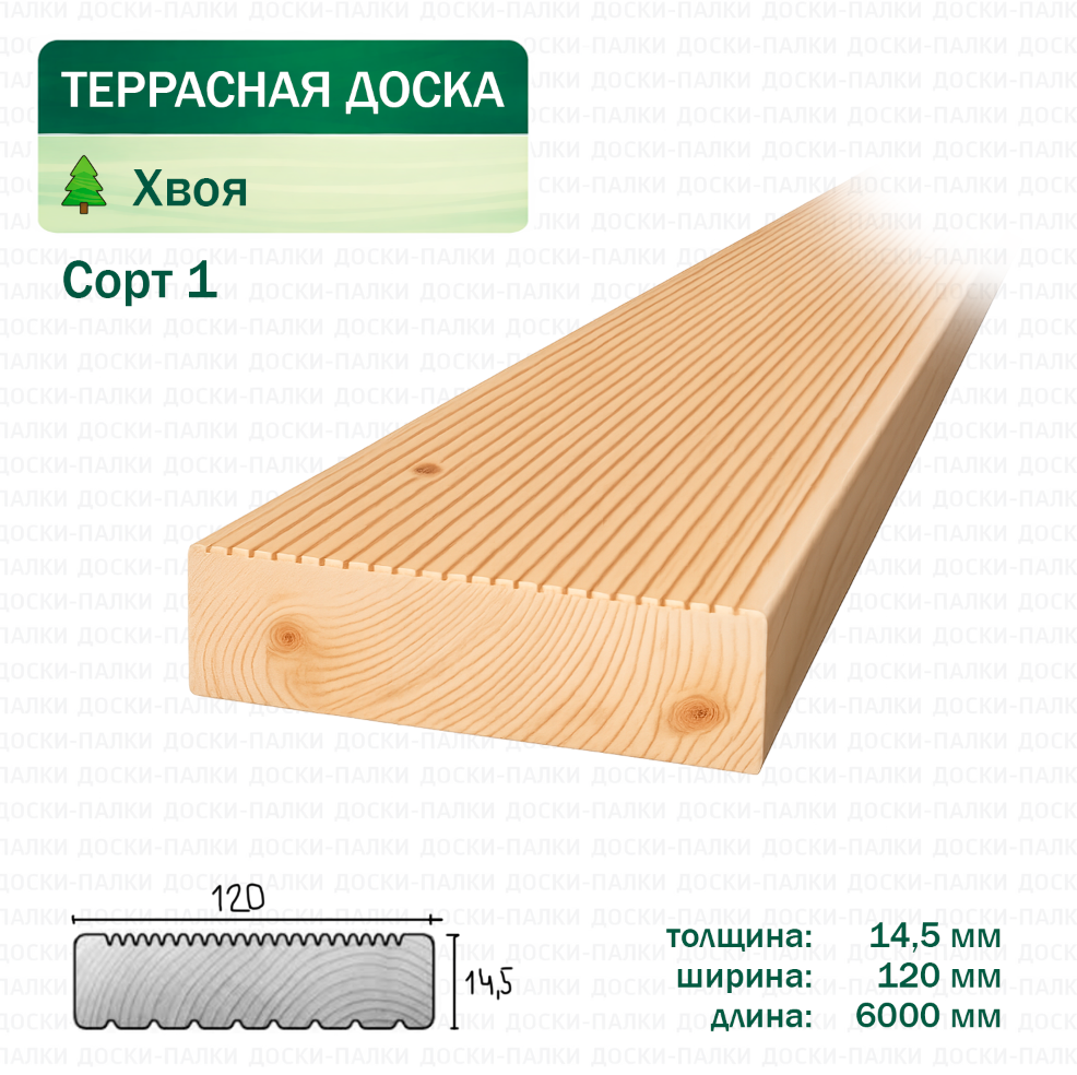 Террасная доска из хвойных пород 32×140×4000 мм, сорт А. Строганная, камерной сушки. Подходит для открытых террас, веранд, садовых дорожек. Тестовый товар.